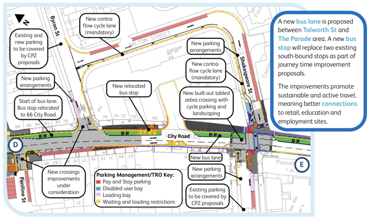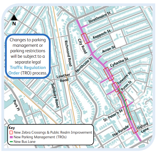 A new bus lane will be introduced on City Road between Talworth Street and The Parade.