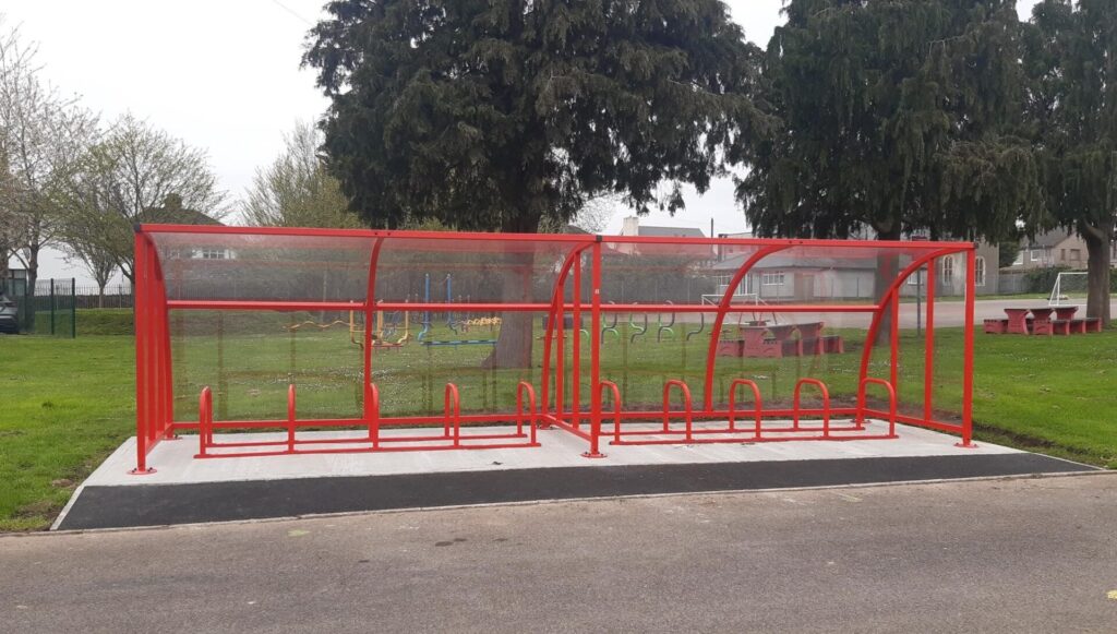 To support our Active Travel strategy and to encourage children to cycle or scoot to school, we have been installing secure, sheltered, cycle and scoot parking facilities in schools across Cardiff. In the past 4 years we have installed brand new cycle shelters, cycle parking racks, and scooter parking racks at nearly 80 schools and we plan to install these facilities in all the schools in Cardiff that need them. Some examples of recent projects are shown in the pictures below. The scheme is aimed at schools that don’t have any facilities, need to update old facilities, or need to add to their existing provision due to high demand.